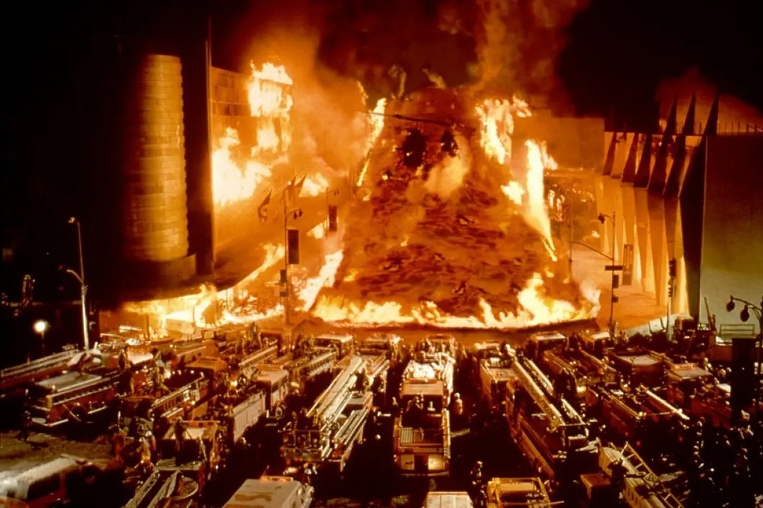 在一次大地 震中,洛杉矶地下深处的火山突然喷发,喷发的岩浆迅速向住宅区流去,导致维修地下管道的工人不幸被烧死。