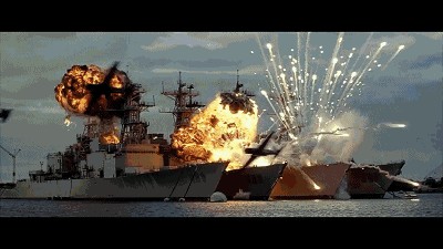 虽然剧情比较狗血,但耗资1.45亿美元的电影《珍珠港》最大的卖点还是长达45分钟的大轰炸场面,由巨资堆砌的战争场面没有让人失望,无论是音效还是画面,还有不得不提的细节:战前,密集的鼓声;战后,从画面的右下方开进的那一抹令人感到安宁的白色——一群迟来救援的海军,这些细节润色了战争场面,令这45分钟更丰富,更饱满。