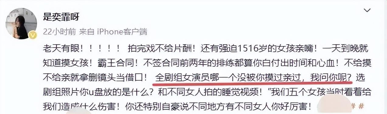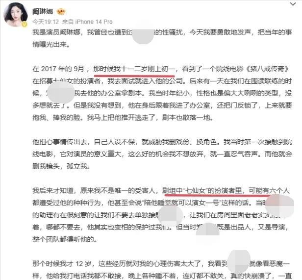 此后阚琳娜更是得知剧中“七仙女”的扮演者,有六个可能都遭受过郑某峰这样的行为。