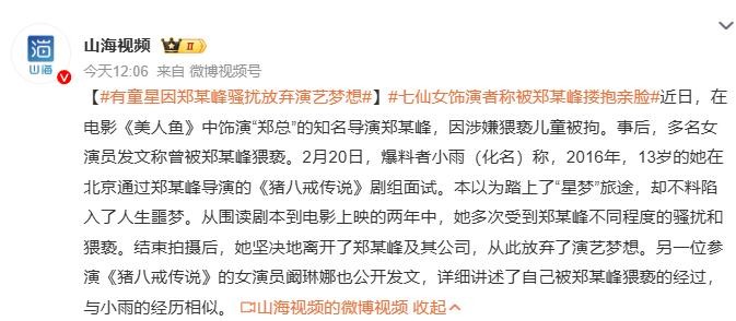 2月19日,郑某峰因猥亵未成年女孩被刑事拘留后,多名女星发文控诉他的恶劣行为;