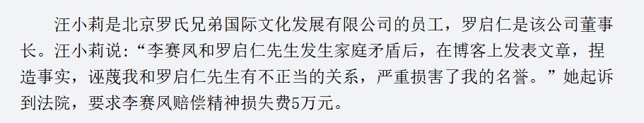 称罗启仁的爆料根本就是无稽之谈,就是赤裸裸的污蔑,是自己先发现他出轨汪小莉的证据,才会出此下策,办理离婚手续时,可以避免财产损失。