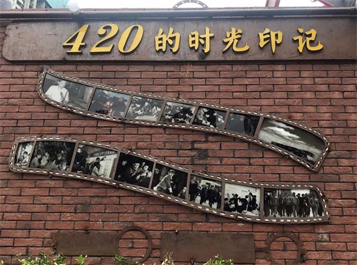 除了有醒目的“万象润街”标志,还挂有以前420厂区的老照片,记录着以前的工作环境和时代面貌。