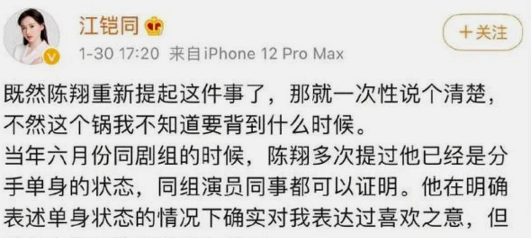 澎湃的风波已过,毛晓彤和陈翔的情感纷争终以女性的绝对胜利落下帷幕。然而,值得深思的是,这个事件一开始,抓奸的对象却是陈翔和江铠同。时间飞逝,四年后,曾经被曝光的“小三”江铠同却无损地消失了。按照江铠同的叙述,2017年六月,陈翔声称与毛晓彤早早分手,单身状态下多次表白江铠同。这一说法令人不禁怀疑,岂不是把毛晓彤也当成了“被小三”?然而,这种受害者论述是否完全天衣无缝,却值得深入思考。