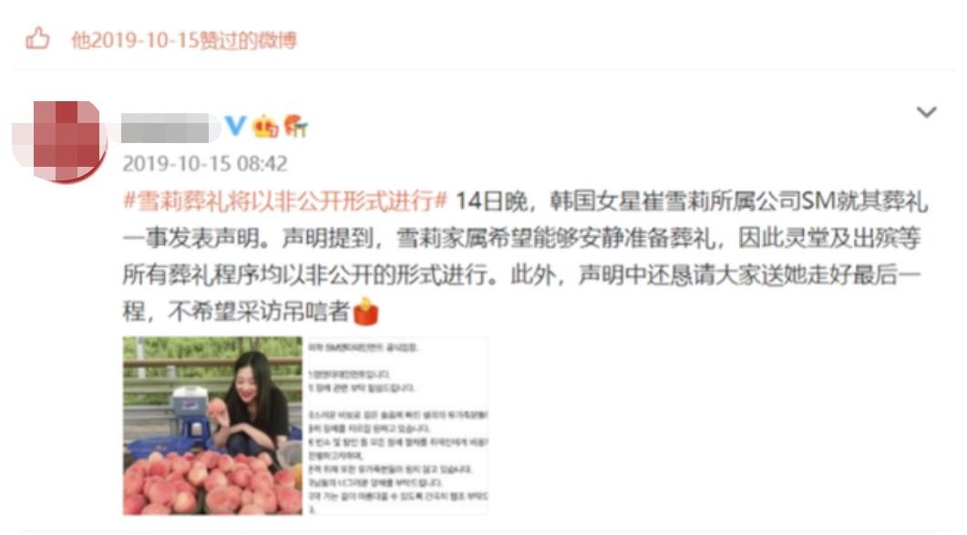 并且有人发现李崇霄在2019年有关注韩国女明星崔雪莉的葬礼,并点赞过相关内容。要知道,崔雪莉生前也是患有抑郁症的。