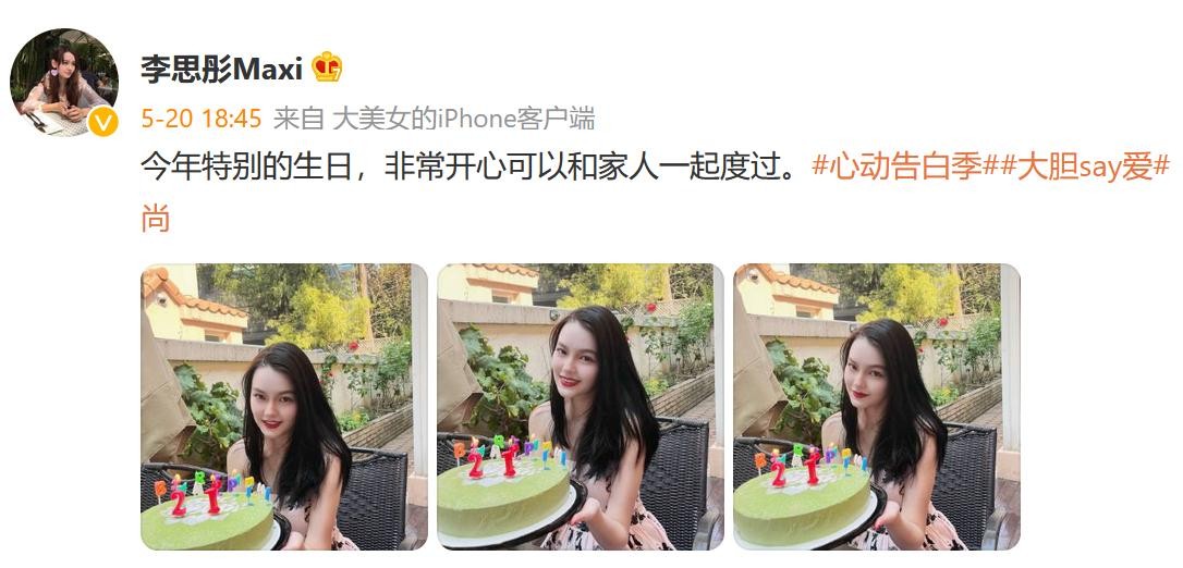 就在上个月,李思彤还开开心心地发文说:“今年特别的生日,非常开心可以和家人一起度过。”