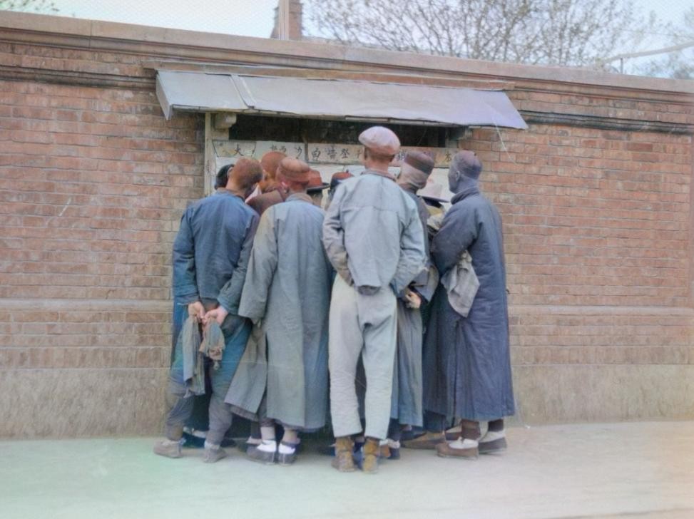 一堆人围在一起观看报纸