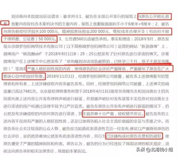北京人民法院判:造谣者赔付受害者刘诗诗经济损失费1万元,精神损害费2万元。