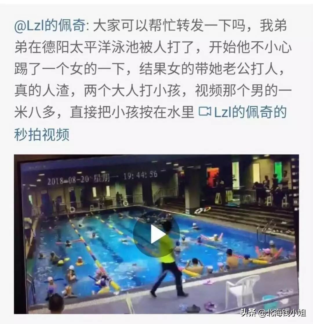 渐渐地,新闻发酵成——“疑因妻子被撞,水务局人员泳池内打男童。”