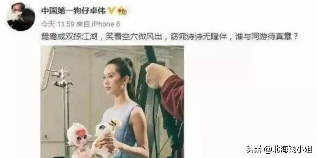 就连国内第一狗仔卓伟,也曾发微博称:“鸳鸯成双掠江胡,笑看空穴傲出风,窈窕诗诗无隆伴,谁与同游待真章?”暗指刘诗诗“出轨”。