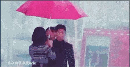 拍淋雨戏时,工作人员不小心把伞拿走了,吴奇隆就条件反射地把刘诗诗护在怀里,生怕她被淋湿: