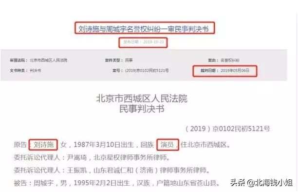 就在半个月前,10月21日,因被恶意造谣出轨离婚,刘诗诗名誉权案一审获胜。