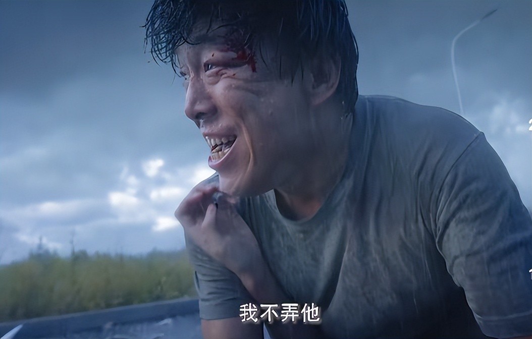 在抓到凶手之后,黄渤脸上狰狞的笑意,泪水、血水、雨水混合滴下,掩藏了老父亲的脆弱,只剩下面对凶手的癫狂。