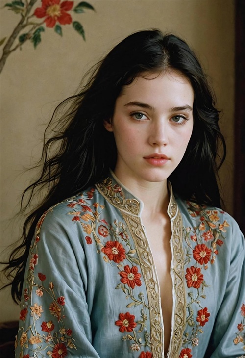 AI绘画,AI美女,性感东方古韵感法兰西玫瑰伊莎贝尔阿佳妮