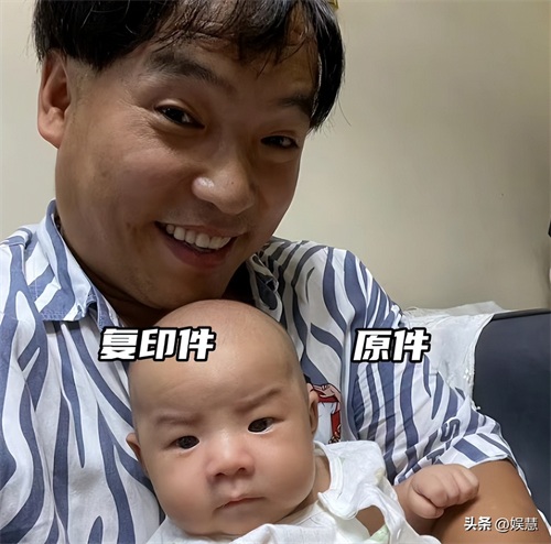 照片中霍云龙抱着孩子,父子二人几乎长得一模一样,连他媳妇儿都感慨一个是“原件”一个是“复印件”。