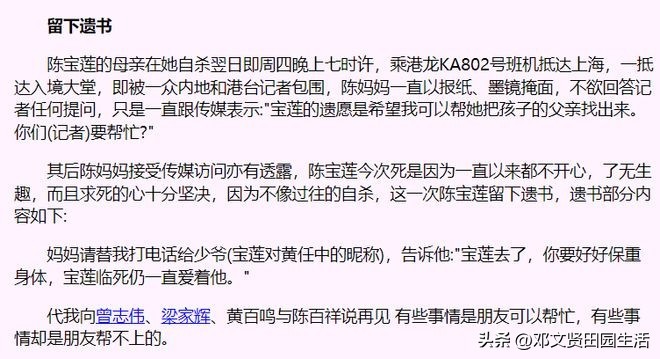 在她的遗书中,她仍然对黄仁忠念念不忘,向曾志伟、梁家辉等好友告别。