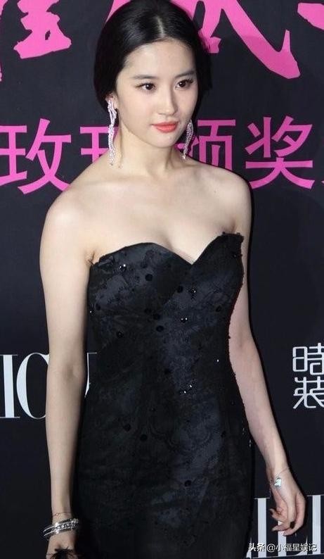 像这种黑色的廉价露肩裙,换成别的女星早翻车了。