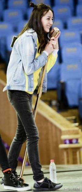 她有着一双逆天的大长腿,在加上直角肩、A4腰,从侧面一看就是妥妥的大美女一枚。
