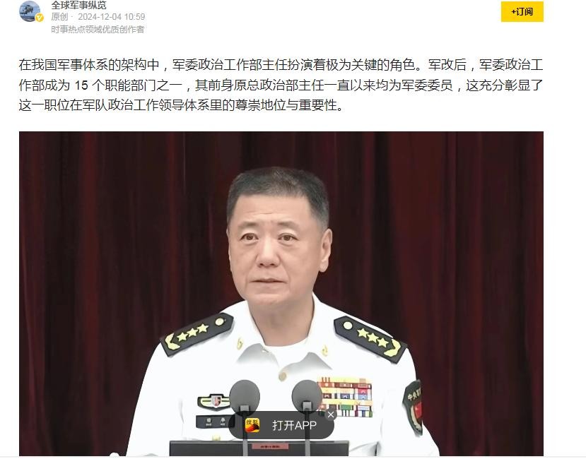 是通过军队政治工作,确保军队绝对忠诚于党,保持强大的凝聚力和战斗力的最关键一环。因而该部门主任的级别,即便是在职务级别上,也是极高的正战区级上将,甚至还是中央军委委员。