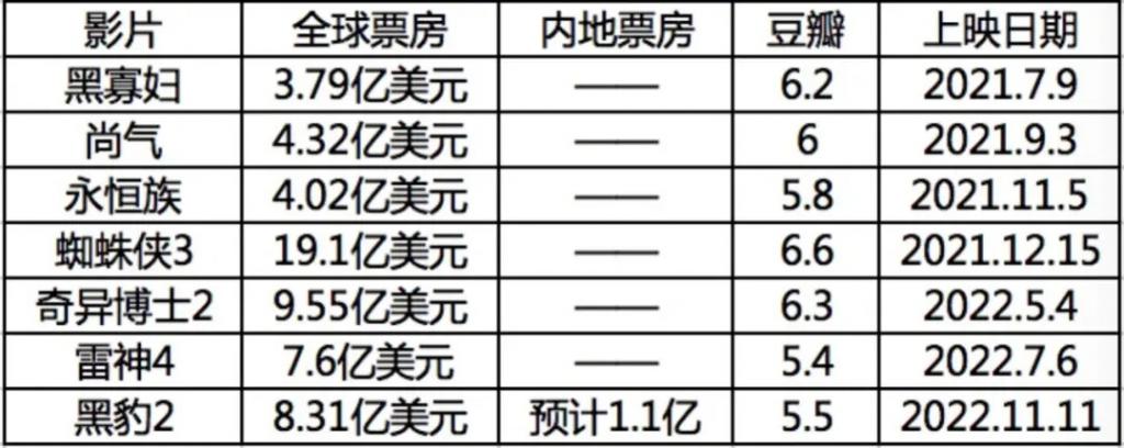 像《黑寡妇》、《尚气》、《永恒族》是刚好跟疫情有一个重合,外加登陆流媒体导致了大量分量,给漫威第四阶段打下如此悲观的基调。如此低迷的票房体量,等同于漫威打了 5 折,高傲的漫威终于神气不再了。