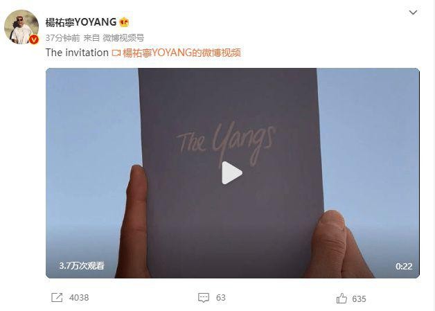 杨祐宁晒婚礼喜帖 将于本月 31 日补办婚礼