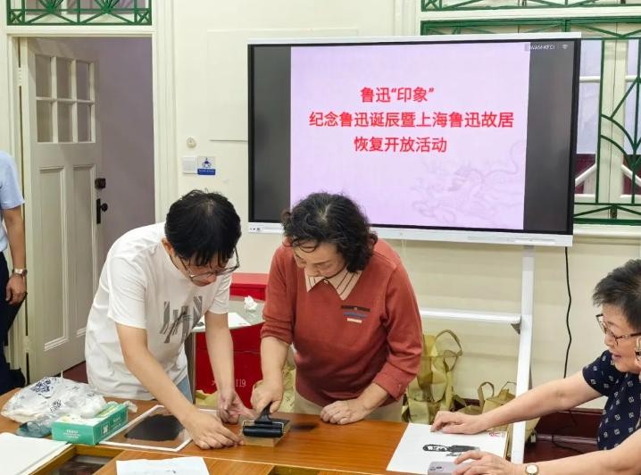 鲁迅提倡新兴木刻运动,关怀和培育了一大批木刻青年,被誉为“中国新兴版画之父”。恢复开放当天,上海鲁迅故居邀请周边社区居民,参与木刻拓印活动。