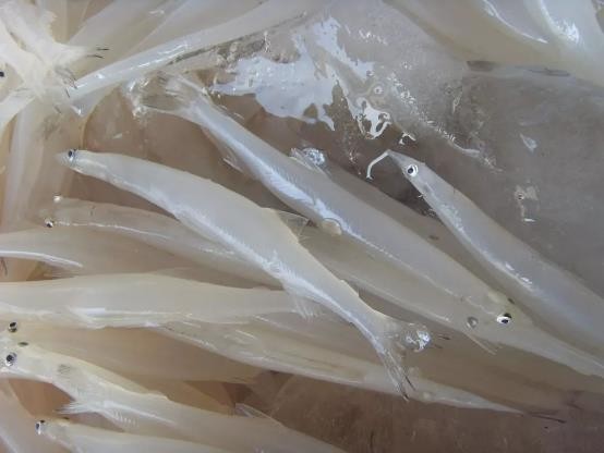 13、银鱼:鱼体细长,近圆桶形,后部略侧扁,状似面条,体白色半透明。