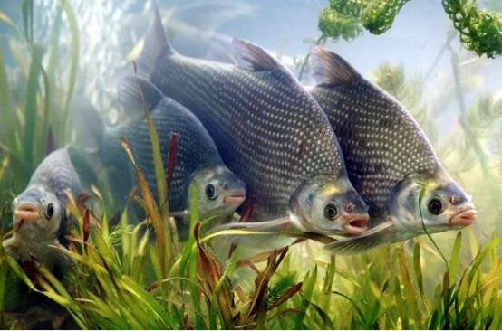 4、鲫鱼:体呈银灰色,背部颜色较深。最大个体可达4kg。适应性强,不论水深或浅、流水或静水、清或浊均有其踪迹。杂食性。