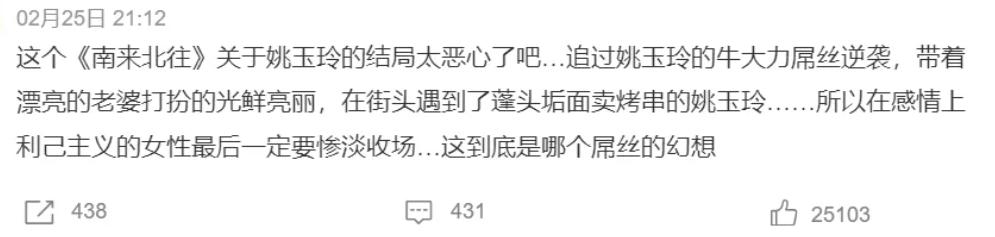 一时间,意难平的观众们讨伐声遍布全网,为姚玉玲打抱不平。