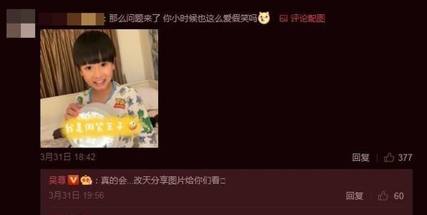 照片曝光后立即引发网友讨论,惊呼父子俩“都是用同一个模具雕刻而成”,粉丝们还截取了一张马克斯假微笑的照片,并问道:“你小时候那么喜欢假微笑吗?”我的回答是“真的会的”,证明我的儿子甚至有着和他一样的人格。此外,也有不少网友开玩笑说“马克斯更帅”、“我弟弟长大后绝对漂亮”、“比你还帅”、“只想看小吴尊,不想看大吴尊”、“能不能让马克斯出来”、“基因太强”、“那就夸马克斯还是夸自己”。