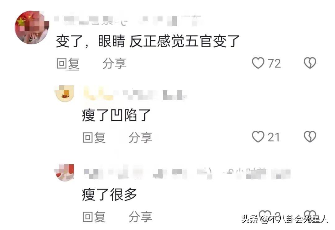 值得注意的是,蒋欣变瘦了不少,眼皮那里有点奇怪,层层叠叠的,不像是传统的双眼皮,看起来像是三眼皮,四眼皮。