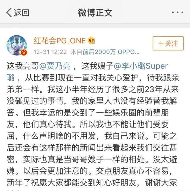 他说他“认识到自己的错误并道歉”,但在最初的道歉声明中没有提及与嫂子的吻。他还一脸无辜,承诺在岗位上称贾乃亮为“我的兄弟”,李小璐为“嫂子”,而对方则把他当作自己的兄弟。