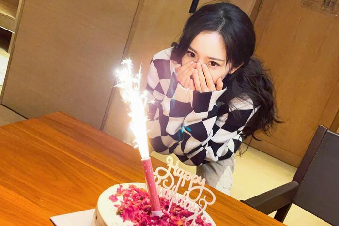 9月12日,杨幂在社交平台上晒出了自己的庆生照,照片中,杨幂穿着黑白格子长袖,头上戴着生日帽,前面摆着一个小蛋糕。双手捂着脸,眼神看向远方,皮肤白皙细腻,看不出来已经35岁了。