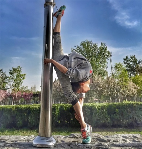 这位美女就是舒思瑶,对,就是这张照片,没有经过任何的外力和p图,是靠自己身体的柔韧度所完成的。这个动作并非一般人能够完成,除了需要惊人的柔韧度之外,还需要高超的技术。