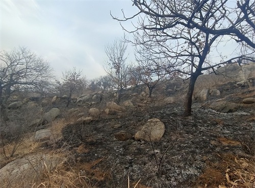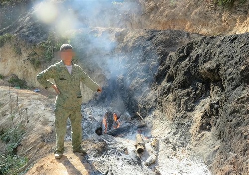 二人壮着胆子,慢慢地向深山走去。在走了几百米的距离后,他们二人看到了着火的根源地。