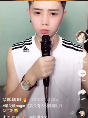 2018年5月,郭聪明在抖音发布了一首最欠版的《sugar》,凭借着魔性的嗓音,搞怪的唱法,很快就登上了热搜,这首歌也被很多流量大V拿来当作自己视频的背景音乐。