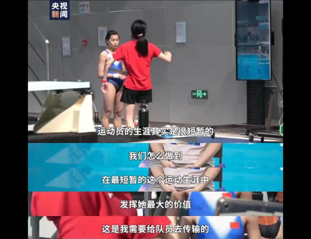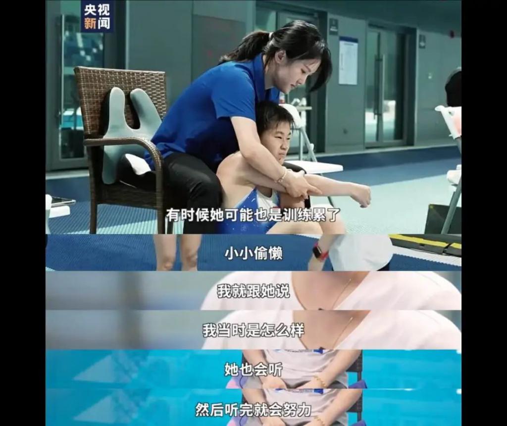 当全红蝉偶有松懈时,她也会聊起自己过去的故事,为她加油鼓劲。