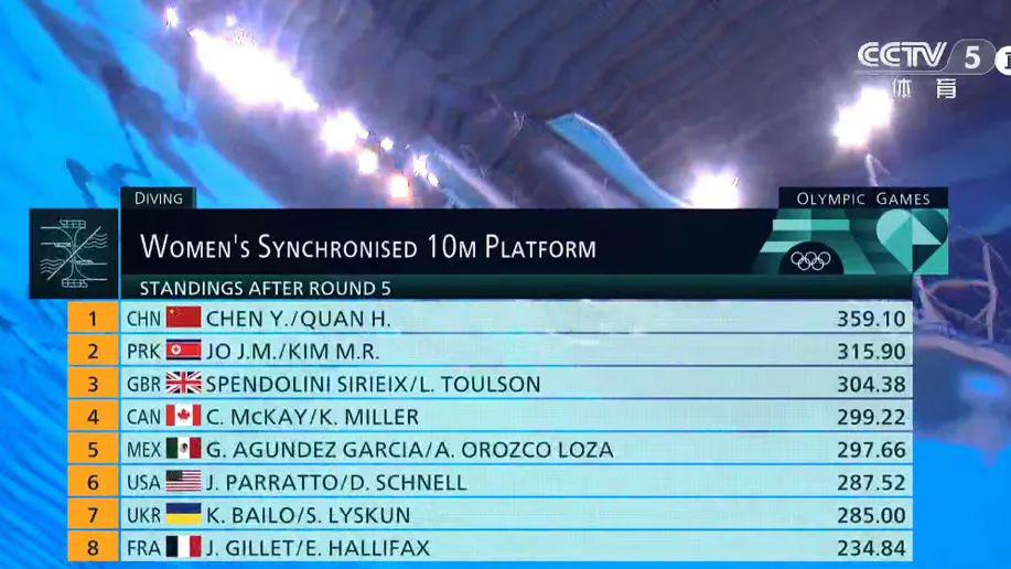 以高出第二名43.2分的成绩,摘得跳水女子双人10米台金牌。