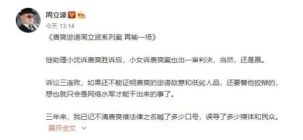 近日,周的代理人诉唐爽案胜诉,着实的让周“好嗨呦”了一把。