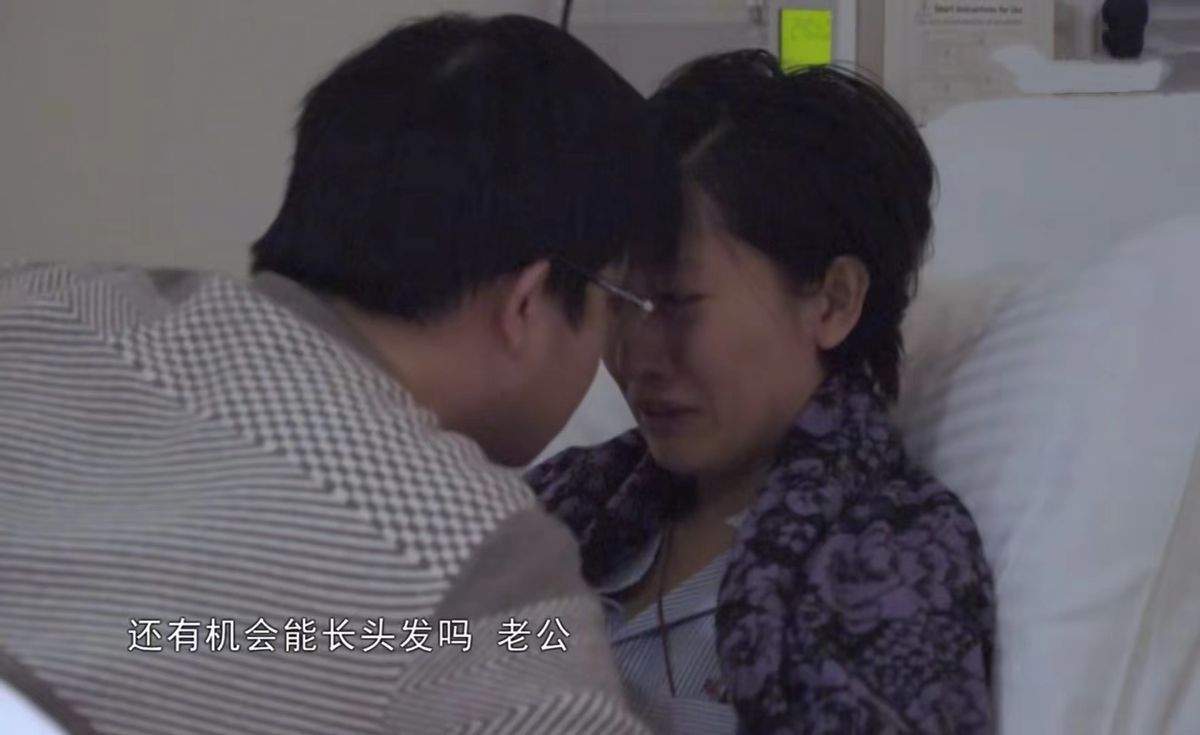 张丽君多冰雪聪明,从丈夫的神情和话语中,她已猜到自己时日无多。她没有哭闹,而是乖巧地大口咀嚼他喂过来的饭菜,笑着说头发会长出来的。