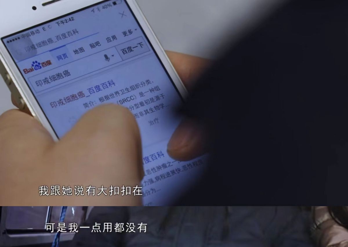 他在查询印戒细胞癌的相关信息,这是一种世界罕见、恶性程度更高的分化胰腺癌,也是张丽君此次术前检查的结果。