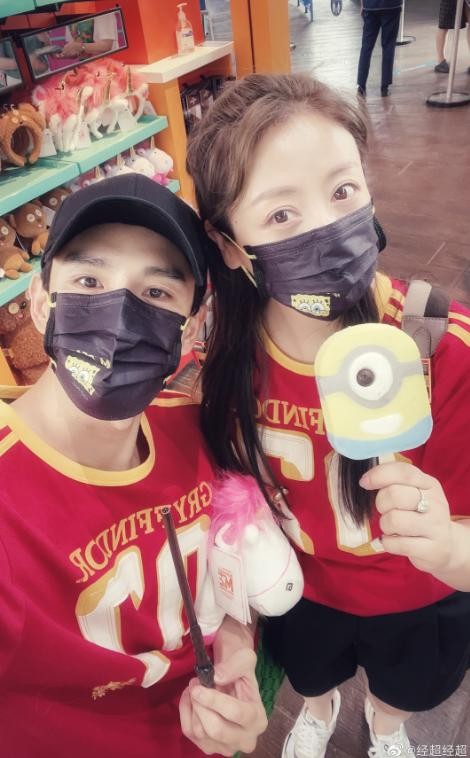 夫妻二人本周还带小朋友一起到环球影城打卡,他们穿着情侣装秀恩爱,像一对年轻的新婚夫妇。经超的精力爆表,一会儿给女儿骑肩上,一会儿又把睡着的女儿抱在怀中,让小李琳解放双手尽情畅玩。