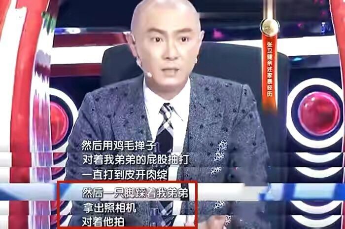 年幼的张卫健常常被父亲抽打得皮开肉绽。