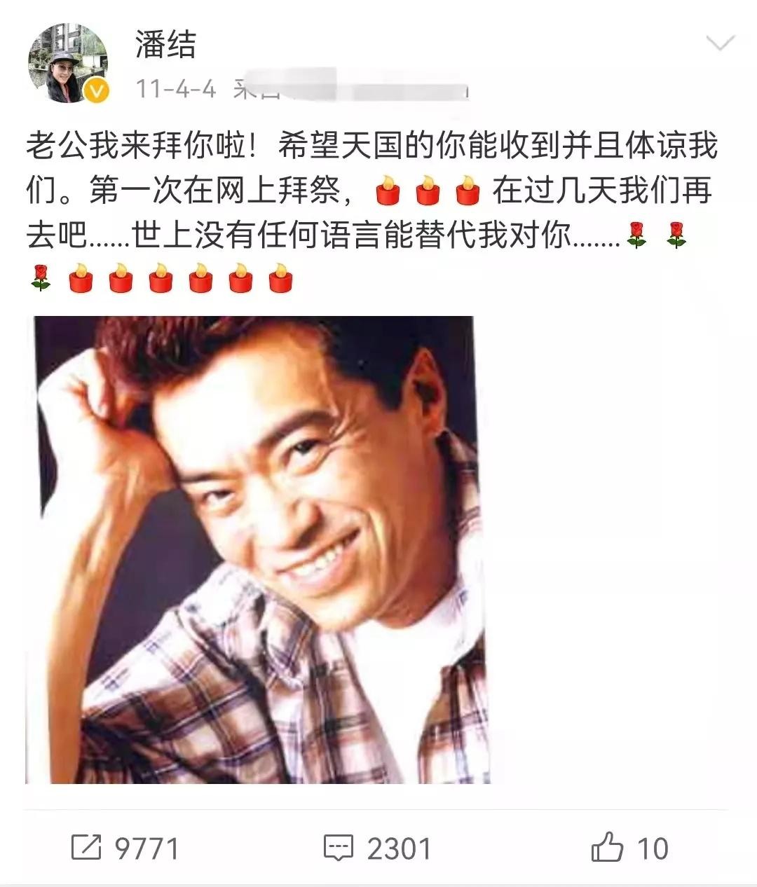 潘洁对丈夫一直念念不忘,一直信佛的她每到他的祭日都会发文表达自己对丈夫的思念。
