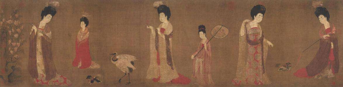 唐朝簪花仕女图(图中有宠物狗、白鹤)