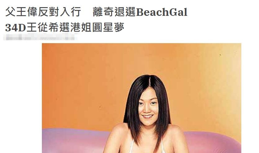 比赛结束后,王从希曾签约TVB,但发展不如理想。之后,她转战电影圈,依旧没什么水花。