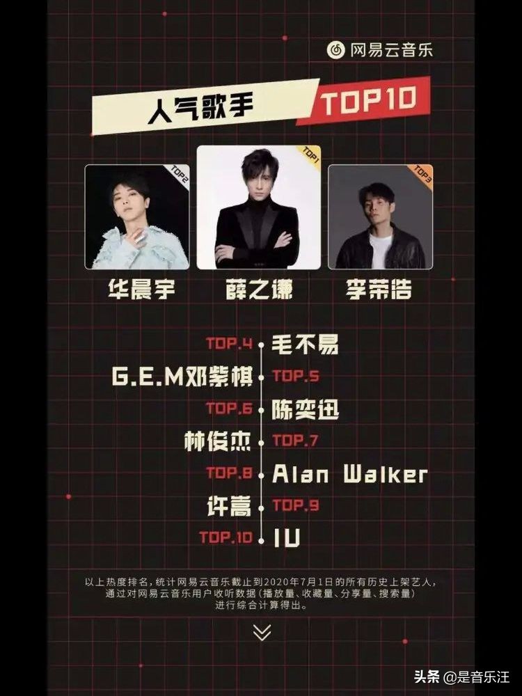 所以当这一次拿到“网易云音乐平台人气歌手top10”排名后,老编觉得比绝大多数音乐榜单都靠谱。