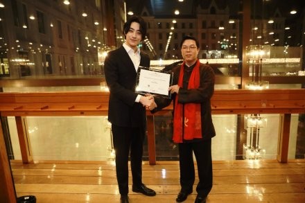 近日,中国音乐剧演员郑云龙在奥斯陆获颁“挪中文化交流青年使者”称号。 挪威是最早承认中华人民共和国、并同新中国建交的西方国家之一。2020年,中挪两国将迎来建交66周年。此次郑云龙受挪威国家旅游局官方邀请前往挪威,在中华人民共和国驻挪威王国大使馆、挪中文化旅游基金会的支持下获颁此荣誉。“戏剧无国界”,期待青年使者郑云龙在未来为两国文化交流做出更多贡献!