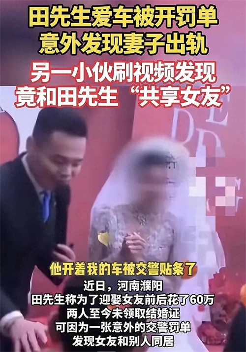 直到前两天,他的妻子开着田先生的车被贴了罚单。警察调查监控,这才发现他妻子在外面早就有了另一个家!而且已经同居好几个月了!