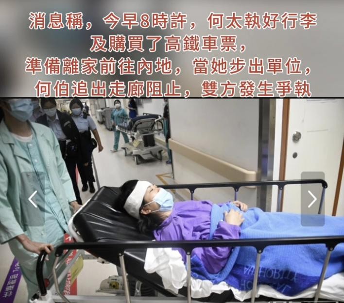 随后两人被紧急送往医院,何太受伤很严重,当即做了紧急处理。直到5月30日,何太才情绪稳定接受记者采访,她面对镜头哭诉何伯想要他的命,自己绝对不会原谅他。