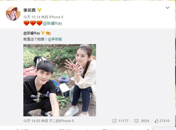 张睿发和女友的恩爱照,女友李若嘉是个超爱自拍的小演员